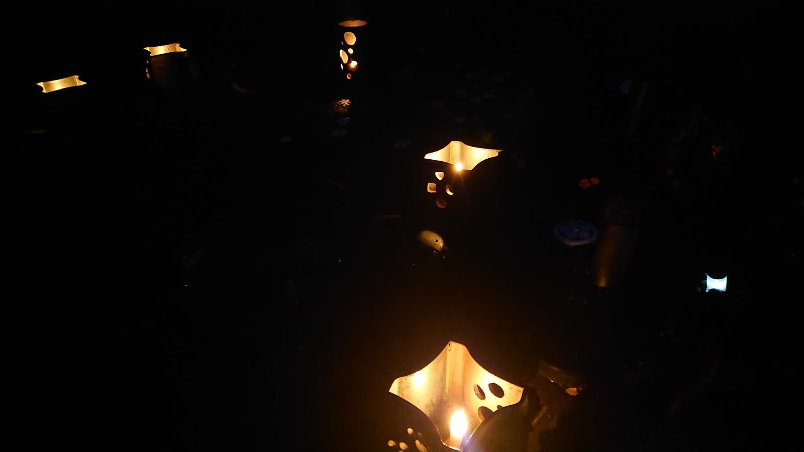 6/8㈯の前夜祭はあいにくの雨となりましたが、瓦灯篭のロウソクは何とか灯すことができました。